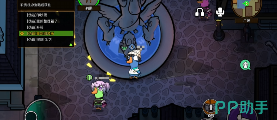 广场区域设有“下毒”任务:鹅阵营需在倒计时结束前抵达最右侧红灯区,完成水泵换水操作,方可解除中毒状态。若超时未完成,将直接导致鹅方任务失败。该任务具有高暴露风险,鸭子可长期蹲守红灯区周边,伏击单独行动的鹅玩家,实现高效减员。