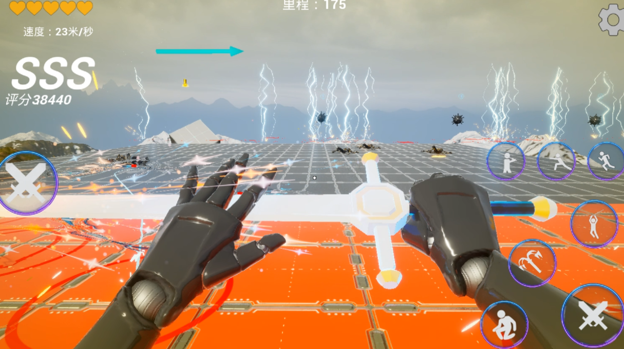 融合Roguelike机制的FPS视角跑酷动作手游,玩家操控机甲战士在程序生成的巨型工业废墟中高速移动、实时近战斩击。每局游戏随机掉落武器、芯片与被动技能,支持近战武器热切换;物理反馈扎实,刀光轨迹与受击抖动同步优化,第一人称视角下跑酷腾跃与劈砍判定形成强节奏感,单局时长控制在8–12分钟,适配碎片化游玩场景。