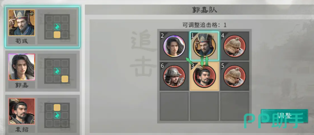 在角色分工上,袁绍担任主输出位,承担主要爆发与持续伤害任务;郭嘉作为副C,侧重概率型补伤与状态干扰;荀彧则定位为功能性辅助,专注稳定增伤与生存保障。三者技能机制高度契合,形成闭环支援链。兵种配置方面,前排推荐藤甲兵,依托其高减伤特性有效吸收物理与谋略伤害;后排可部署杨军,发挥单点穿透优势,补充中后段输出缺口。站位设计尤为关键:袁绍需置于郭嘉追击范围之内,既可实时获取增益加成,又能稳定触发追击联动;郭嘉初始站位无需强求特定格子,待其升至鎏金品质后,再依据实际战况动态优化位置,从而最大化技能覆盖率与响应效率。