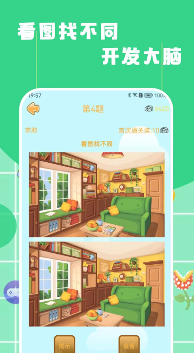 游戏是卡通风格的,看着心情会一下子放松下来,而且玩法也不复杂。大家在里面是一名小侦探,在两张看上去差不多的图片里,需要把不同的地方找出来。不要看这个任务听起来非常简单,有一些差别藏得非常的隐蔽,不仔细观察真的发现不了,而且每一个关卡都有时间限制,需要在一定的时间内完成,玩起来紧张感十足,越往后就会越刺激。