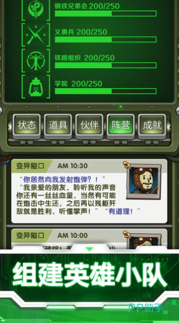 游戏里的文字剧情非常有趣,就像求生类文字游戏,外面的世界全部都是被辐射污染,大家做的每一个选择都非常关键,直接决定了大家最终能够走到哪一步,会有什么样的结局,剧情都是按章节推进的,每一个章节里都有很多的剧情,大家可以在这些任务里体验到文字探险的乐趣。而这里面还有很多突发剧情,每一次遇到都会带来很多惊喜,再加上一些策略玩法,可以给大家带来更多的求生思路,玩起来非常的有意思。