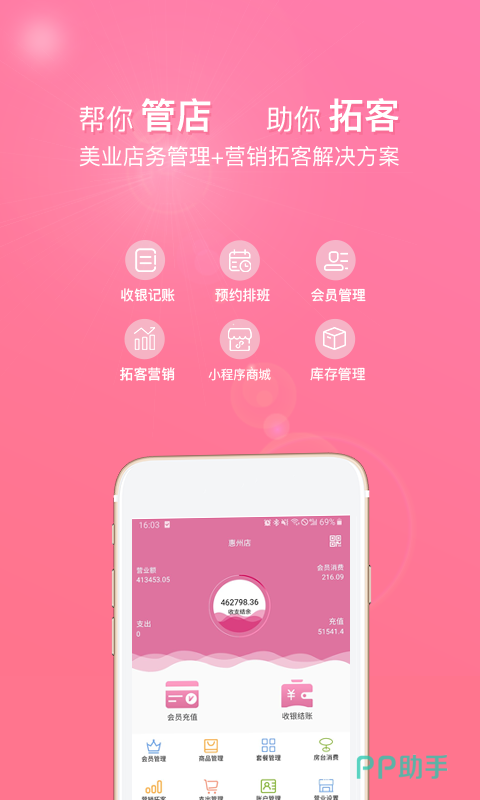 垂直服务于美容、美发、医美等美业机构的一体化SaaS系统。集成POS收银、商品库存、预约排班、会员生命周期管理四大核心模块。前台扫码3秒完成项目开单,支持储值卡消费、时段折扣、套餐组合等多种营销配置。会员档案支持标签化分类、消费轨迹追踪、偏好建模,并可自动化执行生日关怀、积分兑换提醒、沉睡客户唤醒等精准触达动作。