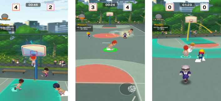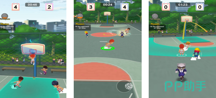 突破校园联赛框架,聚焦城市街头篮球文化表达。游戏采用双摇杆操控架构,左摇杆控制移动方向,右摇杆独立调节投篮角度与传球路线,操作响应延迟低于80ms。模式设计包含1V1斗牛、3V3半场对抗及限时挑战赛,无预设固定阵型,胜负核心取决于临场判断力与队伍默契度,适配移动端碎片化竞技需求。
