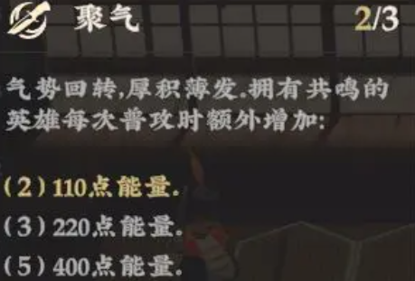 第5个流派的效果需要的是聚气这个共鸣效果,在其中拥有的也是回奶的能力,但是跟前面第一个羁绊不太一样,这里他在1级羁绊的时候攻击敌人可以恢复角色自身100年的能量,而在2级的时候恢复到的就是250点的能量,所以跟第一个羁绊不一样的是这里恢复的是血量,而这里恢复的是能量数值,并且在达到满级的时候,可以恢复到的能量数值也达到了400点,在前期使用技能比较耗蓝的角色身上来说,这个羁绊是最有用的。第6个羁绊叫做铁布衫,铁布衫这个羁绊在当前需要减伤的时候,拥有的防御加成效果还是非常高的,而且是根据百分比来进行提升,1级的时候减少的防御数据是针对于敌人市场减少7%的防御,而在第二级的时候可以减少敌人身上15%的防御数值,在满级的时候减少掉至少30%的防御数值。