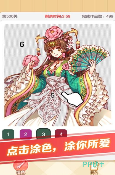 游戏为你准备超多精致吸睛的图片,囊括了古风、植物、卡通等类型的图片,就是要让你的视觉在享受中度过,心情也会大大放松。游戏准备的颜料多,图片和颜料都标明了数字,你只需要根据相对应的数字进行填色即可,让图片更唯美梦幻。游戏里,颜色涂错了,也可以一键撤销,这无疑方便了大家。