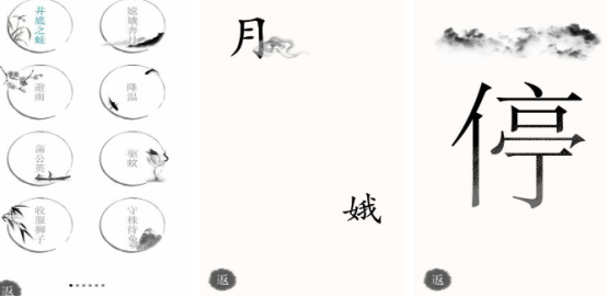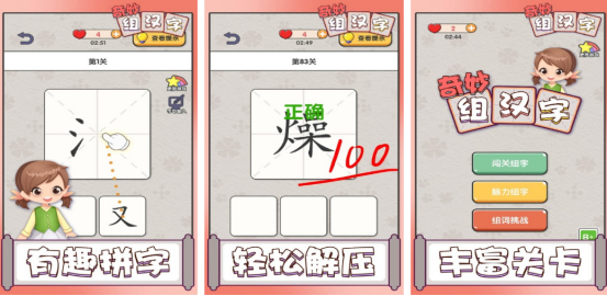 趣味性十足的玩法,通过闯关的方式也能加深对于汉字的理解,由众多精心设计的关卡组合而成,每个关卡中所呈现出来的关卡任务是完全不同的,比如在屏幕上方会呈现出一个田字格,而下方又会有汉字或者是偏旁,大家用手指正确拖动就能组合成全新的汉字,关卡的难度也是由浅入深,如果遇到难以突破的难关时,也可点击右上角的查看提示。
