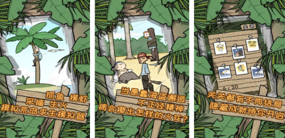 休闲益智解谜游戏延续前作荒岛求生为主题,玩家扮演其中的主角,当流落荒岛之后,通过探索收集资源来解开谜题,推动剧情发展,最终成功的逃离,游戏有足够精致的画面和沉浸式氛围, Q版美术风格再加上漫画设计,搭配别致的音乐与故事介绍,每个关卡都有不同的结局,玩家每次选择会影响之后的故事走向,全面增加游戏的重复游玩价值。