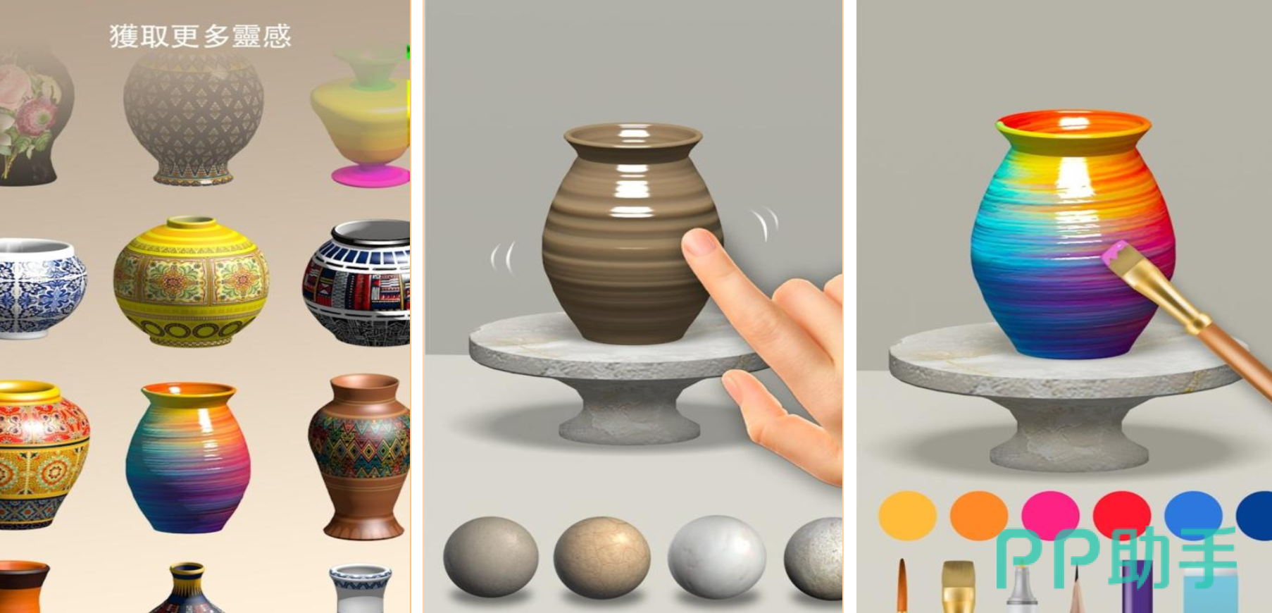 《一起玩陶艺》要求玩家在转盘急速旋转的时候,用指尖的压力控制,找到泥土上升的最佳力学支点。游戏的核心玩法是控制拉坯弧度的准确性,在保证器皿重心稳定的情况下,用手指微调轨迹来完成符合审美逻辑的流线造型。游戏的烧制环节对火候的把握要求很高,上色环节更是加入了非常严格的釉料化学反应模拟。