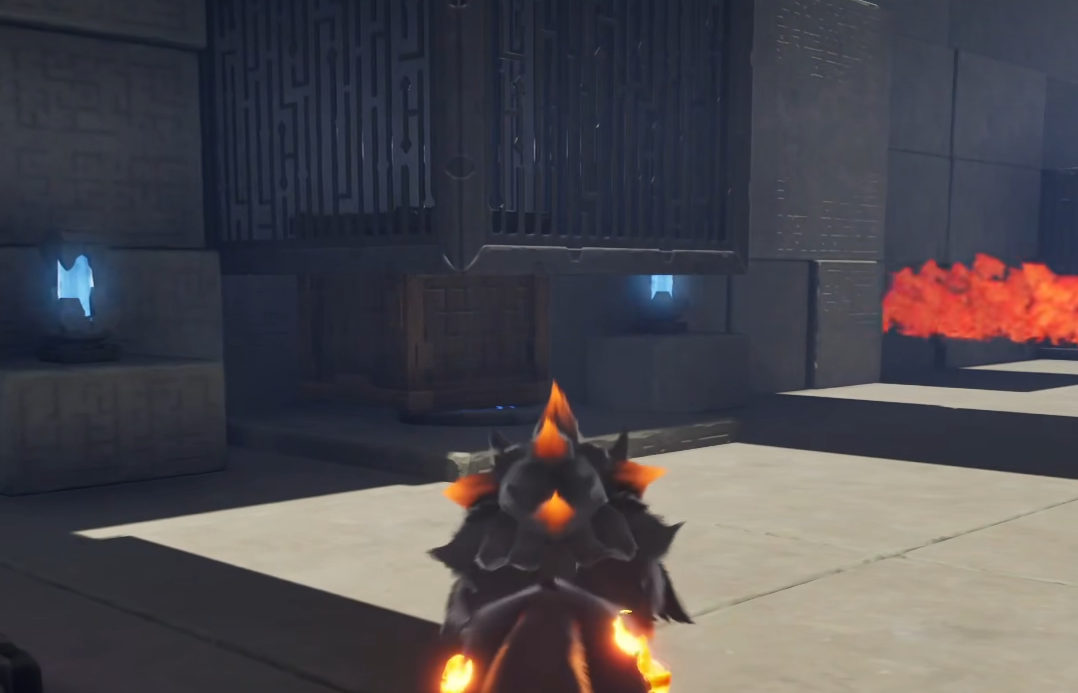 后续关卡延续火焰交互逻辑:所有标定可燃物均需通过伊莫火球焚尽;部分路径被重物阻塞,可利用场景内箱体进行位移或承压操作;遇积水区域时,将箱体置于压力开关之上,水流随即退去;出口常被藤蔓封堵,需以火球精准烧断;最终确认方位后,即可抵达通关终点。