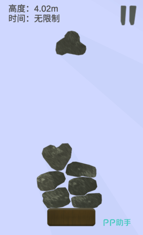 控制石头下落的堆堆乐游戏,有多个外形不规则的石头个体,玩家控制它们一个个落下,找到完美角度堆积,保持平衡不掉落。游戏模拟了真实的物理逻辑,参考现实力学,出现不合理的角度将会倒塌。以及加入石头撞击的音效,模拟石头岛纹路和材质体积感,给玩家真实的堆堆乐体验,随着关卡增加石头造型将变得刁钻,挑战玩家的能力。