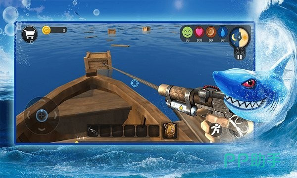 本作构建了一个无边无际的开放海域世界,创新引入木筏建造与漂流生存机制。玩家需在随波逐流的木筏上逐步扩建防御工事,抵御鲨鱼、虎鲸等高威胁海洋掠食者;同时,游戏深度模拟生态退化现象,强化资源稀缺性与环境压迫感,带来高强度生存挑战。
