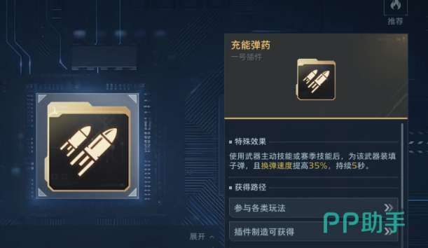 充能弹药是前期玩家装备最多的插件,也是金色品质的插件,对于大部分武器来说都能够兼容使用,能在作战中缩短换弹的时间,命中敌人的弱点后,还能为武器技能充能提升速度,通过推动主线任务或者日常挑战,都有机会获取充能弹药插件,扩容插件也是适配大多数武器的,装备之后弹夹上限会提升,战斗中命中敌人弱点后,还能自动装填一发子弹到弹匣内,增加武器的续航能力,在作战时还能提升枪械的充能速度,在插件制造的玩法中能获取材料自行制造。