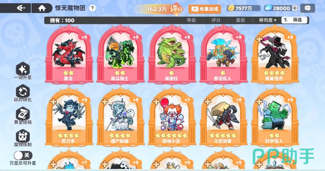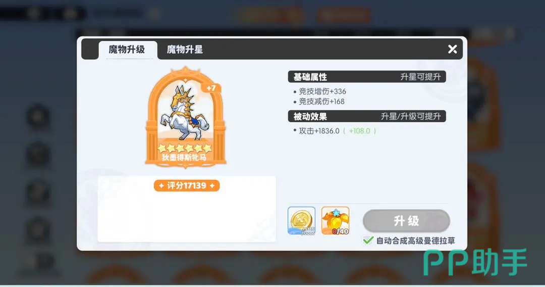 2、升星机制。星级专精于强化竞技属性,每提升1星,竞技增伤与减伤均提升10%;6星升至红星阶段可获得额外30%加成。升星材料来源于魔物夺宝活动,不同稀有度魔物所需碎片数量存在差异——低稀有度碎片虽易获取,但转化效率更高,利于快速堆叠星级。