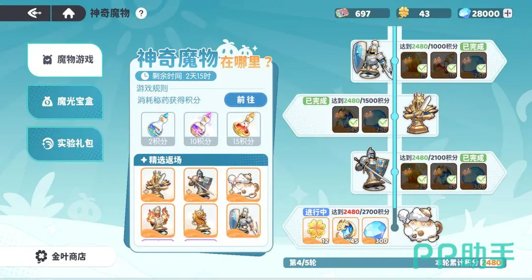 魔物炼制是常规获取主渠道,配合每周轮换的“神奇魔物在哪里”主题活动,可大幅提升目标魔物抽取概率,并同步获取关键资源金叶子。当期UP魔物需消耗红色命运魔药方可参与抽取,复刻池则涵盖新魔物首发及往期热门魔物返场,具备较高策略价值。神话级等高稀有度魔物还可通过限时活动、成就任务、龙巢探索奖励等多种方式补充获取。