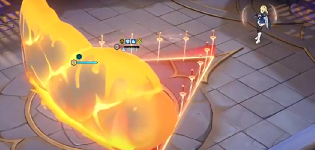 奥义技能释放扇形范围物理伤害,并在身前生成一道可拦截最多20发子弹的实体屏障。屏障被击破瞬间,将使全体敌方幻灵单位下一次奥义技能消耗增加1点能量。