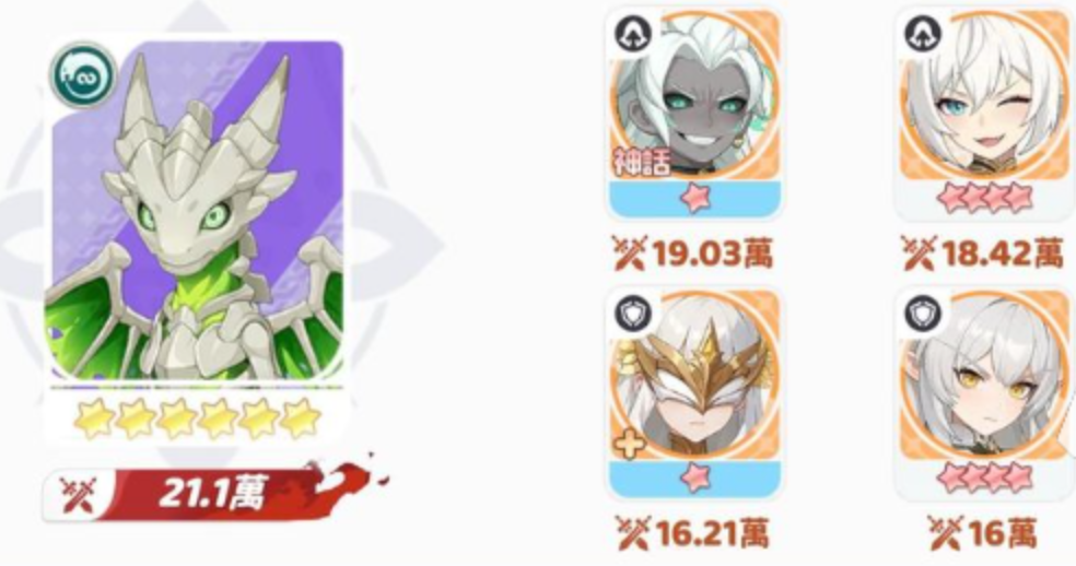 众多强力组合中,耶梦加得黑龙队是后期最强的组合之一。龙魂旅人黑龙队阵容搭配要根据玩家自身资源来定,追求极致输出的玩家一般会选择以耶梦加得为核心的阵容。建议玩家搭配组合:雅典娜、灯神、炎魔、耶梦加得,根据情况补位女武神或者大天使。这套游戏的阵容利用了耶梦加得对敌方防御的削减能力,配合暗属性特有的惩戒效果,在短时间内就能瓦解敌方前排。