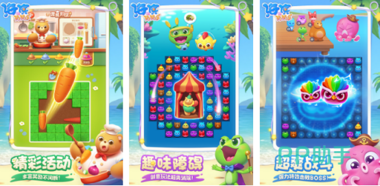 从玩法上来看和开心消消乐特别相似,同时这也是由官方正版授权所创作的。已升级到上千个不同的关卡,每个关卡中的障碍物或者是目标任务都完全不同,比如在各种可爱又萌的小动物世界中,左右上下滑动的方式就能交换小动物的位置。只要满足三个或多个以上就可快速消除,其中还有刷新或者是一次性消除的道具。