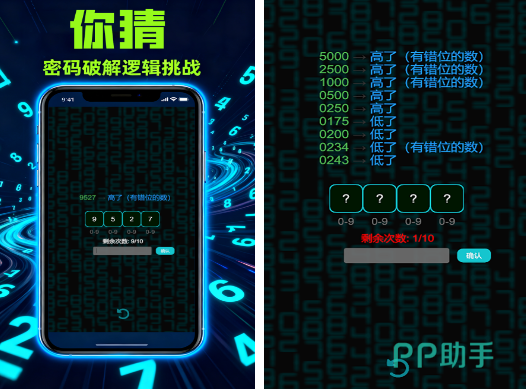 一款数字逻辑推理游戏,规则简洁明确:系统生成n位随机数(允许重复),玩家拥有10次猜测机会。每次输入后,界面反馈“高了”或“低了”的提示,需据此不断缩小范围、调整策略,最终锁定唯一正确答案。训练数感与排除法应用能力,节奏紧凑,挑战感十足。