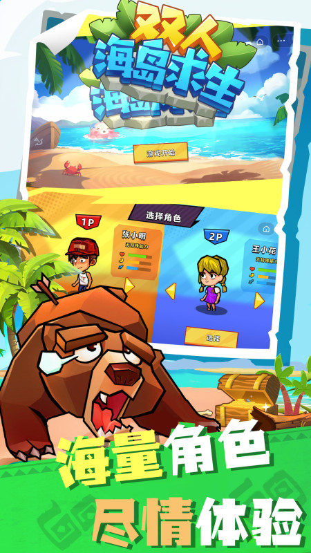 两名玩家在游戏内共同联机探索,《双人海岛求生》这款手游之中的生存挑战才是核心的目标,管理好角色的生存状态,建造自己的营地,寻找更多可以使用的资源,游戏里面的虚拟摇杆的控制按键的操作,搭配上不同的键位动作,游戏内还可以见证属于它们的Q版卡通画风的元素哦。