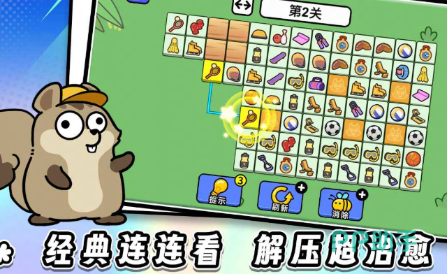 精简传统连连看规则:限定直线或单次折线连接,图案全部选用幼儿高频接触物品(如苹果、小熊、积木、气球),降低识别负担。操作方式为单次点击连线,响应灵敏;关卡时间设置梯度明显——前期无时限,后期引入3秒/5秒短时挑战,科学拉伸注意力持续时长。成功连线伴随光效闪烁与鼓励音效,同步训练视觉搜索、细节分辨与快速反应能力。