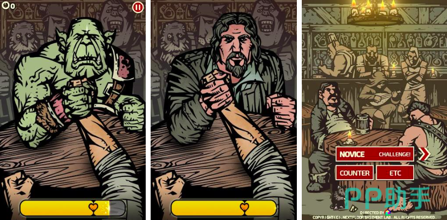 作为七十年代广受欢迎的力量比拼形式,掰手腕不仅是体能较量,更承载着社交仪式感。本作采用美式漫画风格呈现夸张动态,操作仅需单指滑动与短按配合,即可模拟发力节奏与战术闪避。游戏设计包含非线性胜负路径:当力量值处于劣势时,可触发特殊动作如佯攻晃动、借力反制,甚至短暂眩晕对手,强化戏剧张力。配合高燃节奏型背景音乐,完整复现线下掰手腕的紧张感与娱乐性。