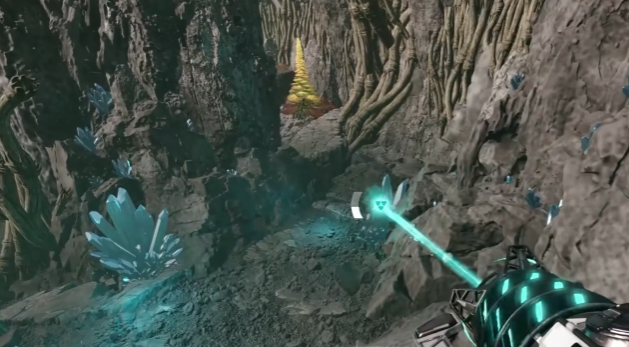 需特别注意:该矿石仅存在于地下洞穴深处,以发光蓝色晶体形态附着于岩壁。洞口常年被高强度生物藤蔓完全覆盖,无法通过常规攻击、火焰或工具破坏。唯一安全进入方式是等待“星际裂变事件”——该全局动态事件触发后,藤蔓会因能量扰动暂时枯萎脱落,洞穴入口开启约90秒。此窗口期结束后,藤蔓将在数秒内快速再生并封闭通道。若未能及时撤离,可选择深入洞穴定位红色能量核心,摧毁后藤蔓同步失活,为脱出提供第二条路径。