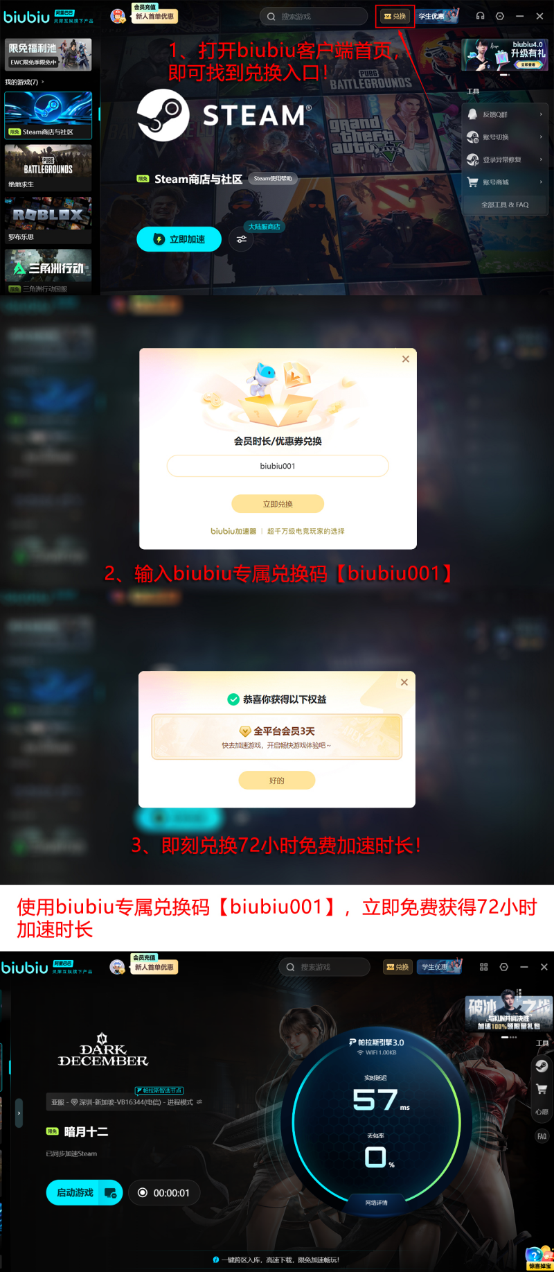 该加速器已通过多项职业赛事验证:PUBG冠军选手小叮当公开推荐,并成为pero战队官方指定赛事加速工具。其底层技术由阿里巴巴灵犀互娱提供支持,核心帕拉斯3.0引擎实现协议层深度优化,带来实质性性能跃升。目前面向玩家开放限时福利:输入口令【biubiu001】即可领取3天免费使用时长;新用户额外享有24小时专属试用权限。两项权益可叠加使用,最高可享96小时零成本加速体验。