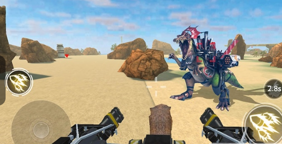 游戏模拟了侏罗纪时期动物之间的各种疯狂打斗,加入了很多机甲战斗的元素,两种风格混搭在一起,非常的有创意。大家在游戏里是扮演的是侏罗纪的霸主,需要救出自己的同伴,这个过程当中需要和其他的野兽比拼,需要正面去硬碰硬,有时还需要跑路保命。游戏用了第一视角,代入感很强烈,那种紧张刺激的战斗氛围非常刺激,并不是写实风格,但是玩起来能够探索到未知的新鲜感,也可以体验到战斗的爽快感。