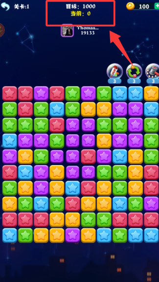 只需要通过交换相邻的星星来达到消除就可以完成任务,每一个关卡所给的分数要求是不同的,因此玩家要仔细地观察每一个星星分布的位置,这样才能够在规定的步数之内达到相应的积分顺利的通过关卡。要尽可能的一次性多去消除一些星星的数量,这样积分的数量将会以成倍的数量往上升,对玩家通关来说是有着很大的帮助的。
