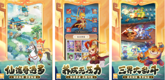 由新游ip所打造,近年来此类游戏层出不穷,而这款作品有独特美术风格和文化表达,采用较为出色的水墨晕染,别致的场景特色在花果山等不同的地带,享受多样化地域气质。创新的空投策略rpg模式通过关卡挑战灵气掠夺战等多种方式来合理的强化伙伴完成角色养成。