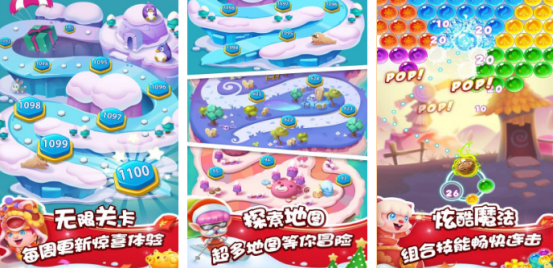 色彩缤纷的游戏画面,也有上百个不同的关卡内容,每个关卡都会呈现出不同的要求,核心的任务就是通过消除泡泡的方式,解救精灵宝宝。在充满未知因素的魔法世界中,各种色彩缤纷的泡泡组合在一起,通过精准瞄准以及成功发射的方式,就能将相同颜色的泡泡全部消除,只要满足关卡任务之后就可以获得更高的分数,完成闯关。