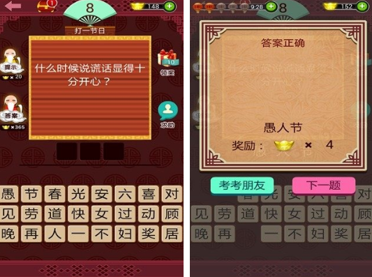 寓教于乐,以答题为主要的题材,无论是一个人进行智力方面的挑战,猜灯谜,或者是与朋友通过对这样的方式进行体验,这都是玩法比较丰富,非常适合在各种中国传统节日中畅玩,包括元宵节的时候也是很好的游戏选择。每次闯关的时候都会有相应的文字提示,你要根据给出的相应内容,点击文字完成解答,才能获得奖励。