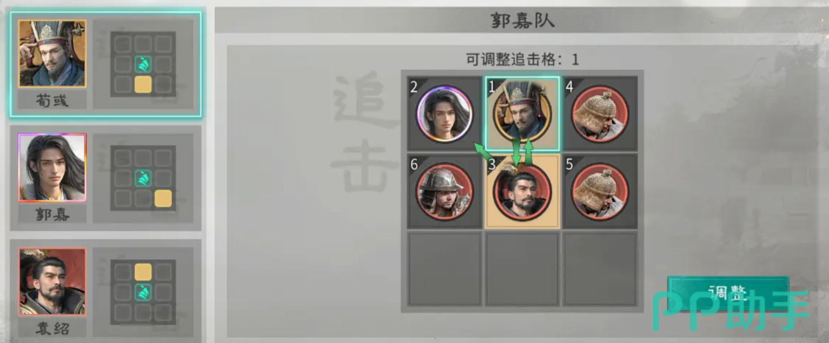 站位方面,建议采用前排藤甲兵承担主要承伤任务,确保袁绍等核心武将生存环境;后排配置单穿杨军,利用其穿透特性补足队伍对高防御目标的压制力。战术走位上,袁绍宜主动覆盖荀彧与郭嘉的追击格子,尤其优先踩中荀彧的“王佐”技能格,以激活额外追击次数,大幅提升技能循环效率。所有武将均建议升至鎏金品质,以解锁更灵活的追击格适配能力及更高阶的属性成长空间。