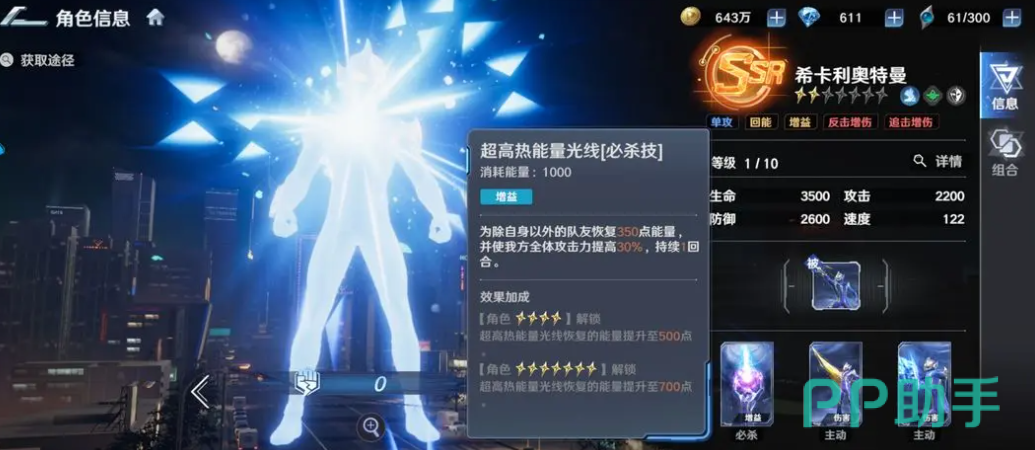 希卡利奥特曼在当前奥特曼系列角色中虽非输出天花板,但在光之国科学家阵营中具有极高辨识度与战术价值。从角色属性维度分析,其智慧值为全系列奥特曼中最高,同时在实战中具备独特的能量协同机制与节奏调控能力,是团队运转中不可替代的战术支点。