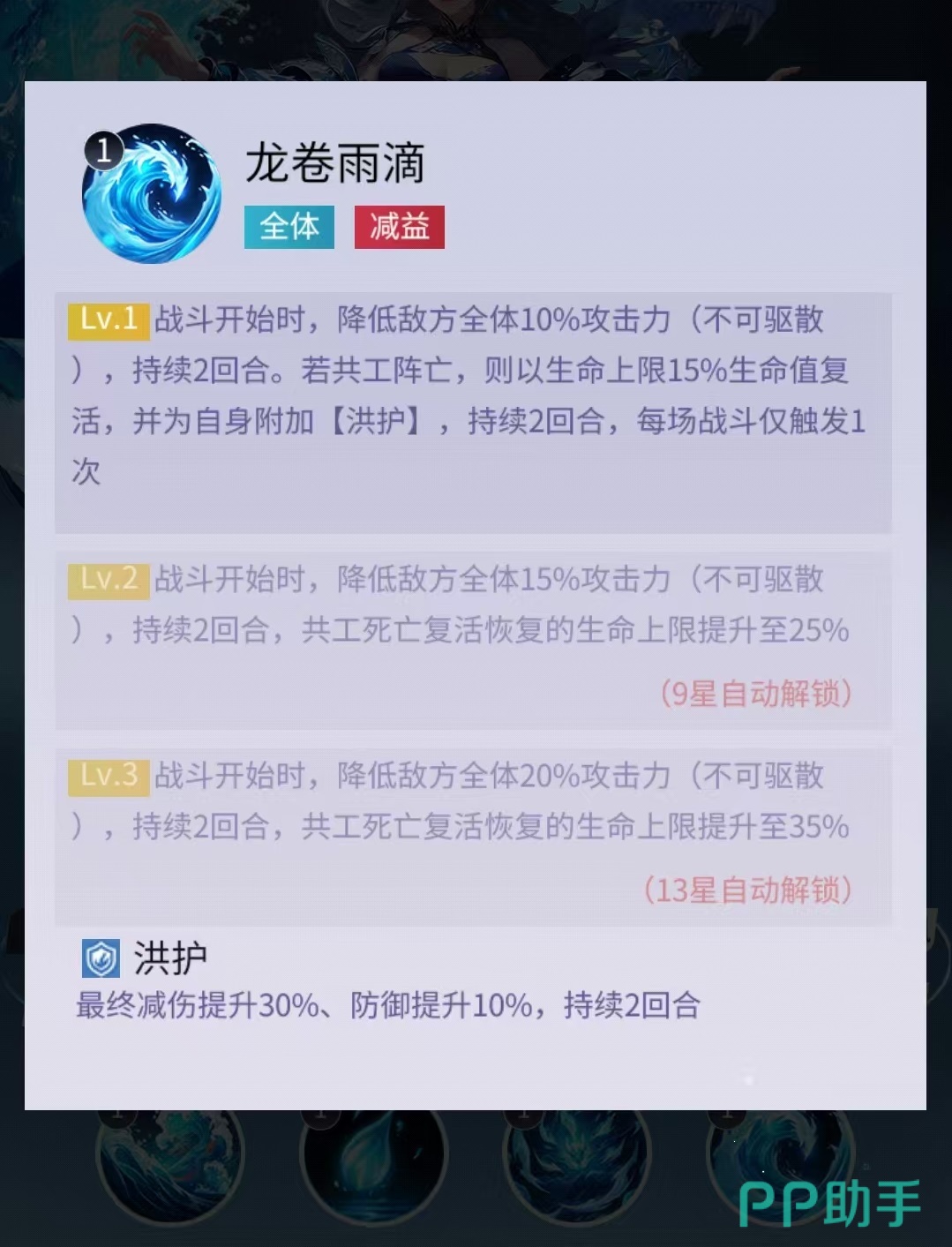 当前主流输出阵容普遍将主力DPS部署于后排,而共工的技能特性恰好可高效覆盖整排威胁,实现对后排队友的立体防护。此外,每次受击均有概率使攻击者感染“疫病”,叠加持续性真实伤害,加速敌方战力衰减。战斗初始阶段,共工还可对敌方全体施加不可驱散的10%攻击力削弱效果,持续两回合,从开局即压制对手输出节奏。