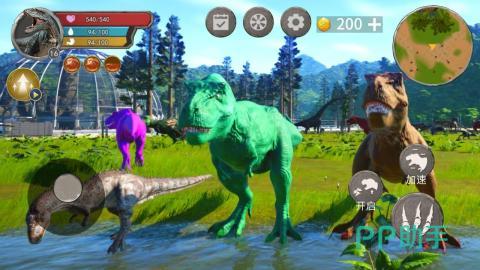 采用“由小到大”的生存进化框架,玩家初始以小型恐龙身份登陆孤岛,通过持续吞噬昆虫、蜥蜴、小型植食恐龙逐步完成形态跃迁。岛上共设十余种恐龙单位,每类均拥有专属攻击逻辑与克制关系——例如甲龙依赖尾锤横扫,需绕后输出;翼龙擅长俯冲骚扰,应优先限制起降点。除战斗外,还需采集浆果、矿石、木材等资源,构筑巢穴防御工事以抵御随机天敌袭击,并可收集装饰物个性化布置栖息地,平衡紧张节奏与探索趣味。