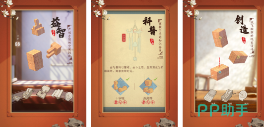 融合传统榫卯工艺与数字交互逻辑,构建具有东方美学特征的国风解谜体系。玩家依据古法图纸,对木质构件进行旋转、翻转与拼合操作,实现严丝合缝的结构咬合。画面采用工笔质感渲染,纹理细腻,光影考究,强化文化语境下的认知代入感。