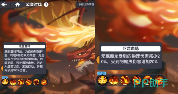 魔龙的凌空威胁技能一旦在释放时就会附加护盾。在8秒之后就会造成全屏巨额伤害,而如果玩家在这一个阶段可以击破护盾,就可以让魔龙进入到虚弱的状态,额外的承受100%的伤害。这就是输出的黄金窗口期,另外巨龙血脉可以让他物理减免20%、魔法伤害承受增加20%。因此阵容的核心就应该围绕魔法输出去创建,单体爆发型的魔法幻灵就是主要的选择。