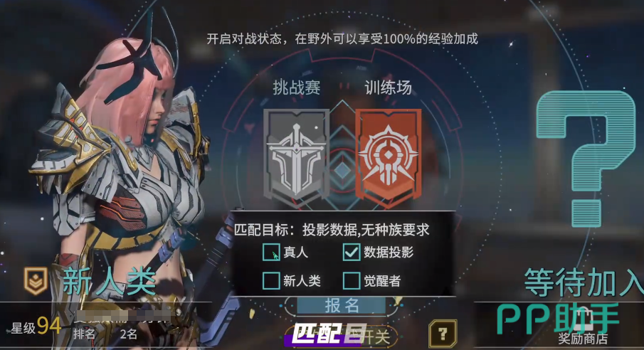 在匹配的时候,玩家可以勾选自己的要求,可以匹配真人,也可以和游戏里的新人类对抗,或者直接按照系统的数据挑选等级相当的成员,想要挑战自己的玩家也可以选择觉醒者,每次选择都能遇到不同的对手,能在这种多变的对战环境中,充分展现出玩家个人的战斗力,建议玩家前期先选择真人对手,并且要勾选上根据投影方便系统根据玩家的能力和等级,匹配能力相当的对手。