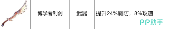 博学者利剑比较特殊,它提升的是24%魔防和8%攻速,适合大天使加百利这种,需要一定生存能力的辅助型幻灵。虽然不是纯输出装备,但在某些需要抗魔法伤害的关卡里作用很大。