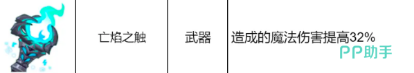 亡焰之触专门给法系幻灵准备的,穿上能提升32%的魔法伤害。波塞冬用这把武器的收益最高,技能打出来的伤害会非常可观。如果队伍里有法系输出位,这把武器的优先级要往前排。