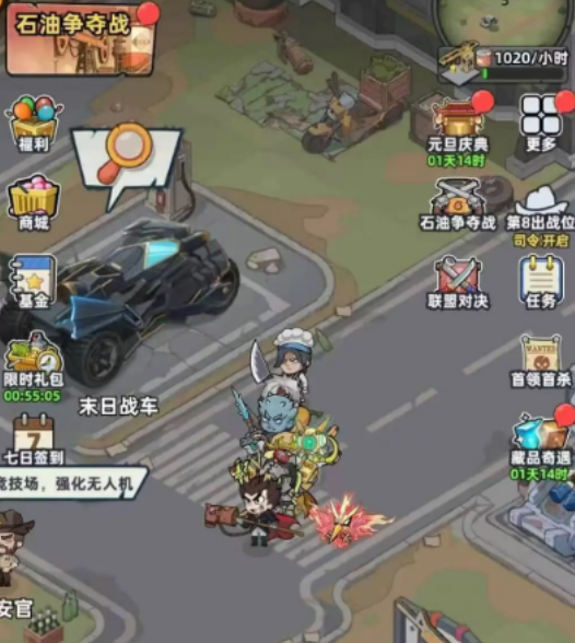 在这个游戏里想要进行联盟对决,就可以参与石油争夺战,需要和其他成员组成联盟,一起去争夺石油田,随着挑战,玩家可以积攒大量的石油,能用这些石油兑换成稀有的奖励,每次限时活动开启之后,会持续四天的时间,建议玩家直接匹配其他的联盟加入,每次挑战都会随机对战其他联盟的对手,角色的战斗力越高,奖励越多,但每一次只要加入石油联盟对战,那都能获得100石油币的奖励,可以在限定时间内加入进去,开启挑战。
