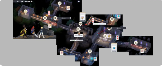 首先就需要搞懂迷宫里面的关键图标,那在后续探索的时候才不会如此的慌乱。双剑图标所代表的就是必须要打赢的战斗,一旦在打赢之后,就可以解锁前方的道路,还可以获得一些道具。气泡图标则是一种可以交互的机关,如果玩家选择正确,就能够打开暗门。箱子图标就是宝箱,因此看到之后就别错过。墙上的蓝宝石就是暗门,要想打开,必须要找到对应的机关。进入迷宫之后先向右边走,然后触发第1场战斗可以获得第1个宝箱。紧接着点击边上的气泡,打开密室的暗门,打赢一场之后获得第2个宝箱。