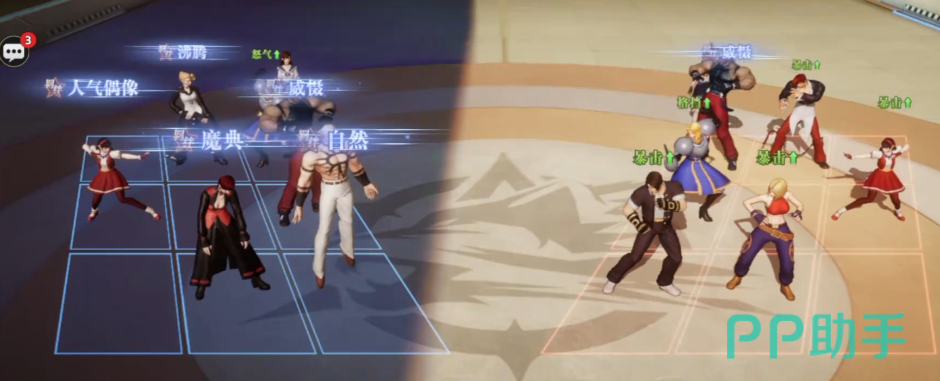 接下来为大家推荐的就是一个经典组合的三神器队,这个三神器里面出现的角色就是三个经典的角色,草薙京、八神庵,还有神乐千鹤,相信对于原始的格斗家比较熟悉的玩家对于这三个经典角色都是很熟悉的,其中神乐千鹤的辅助就是非常强势的队伍效果,而草薙京跟八神庵组合在一起的输出也是推向了非常强的地步,在队伍当中大家还可以用特瑞以及雅典娜一起组成5人小队,这里的特瑞补充到了一个爆发机制,可以让整体的输出再一次提升起来,跟雅典娜的话其实都是可以放在这里来保障队伍所需要的生存能力,在爆发有的同时控制起来的均衡能力,也可以让我方达到一个快速制胜的效果。