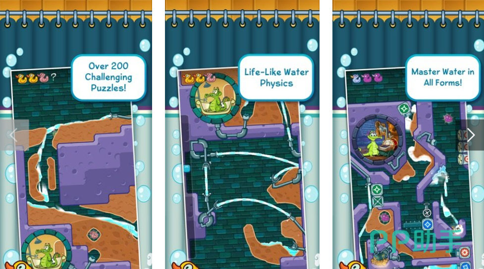 《鳄鱼小顽皮爱洗澡》的主要玩法就是通过引导水流的方式来帮助屏幕下方的小鳄鱼洗澡,而洗澡过程中还可以收集橡皮呀等小玩具。规则虽然简单,但玩的过程中还需要根据实际地形来划开泥土或调整管道,穿越障碍物等。而部分关卡还会设有随早读夜和机关等阻碍,玩时还需要巧妙避开。游戏中的水流使用的是真实的物理引擎,交互过程中效果也特别逼真哦。