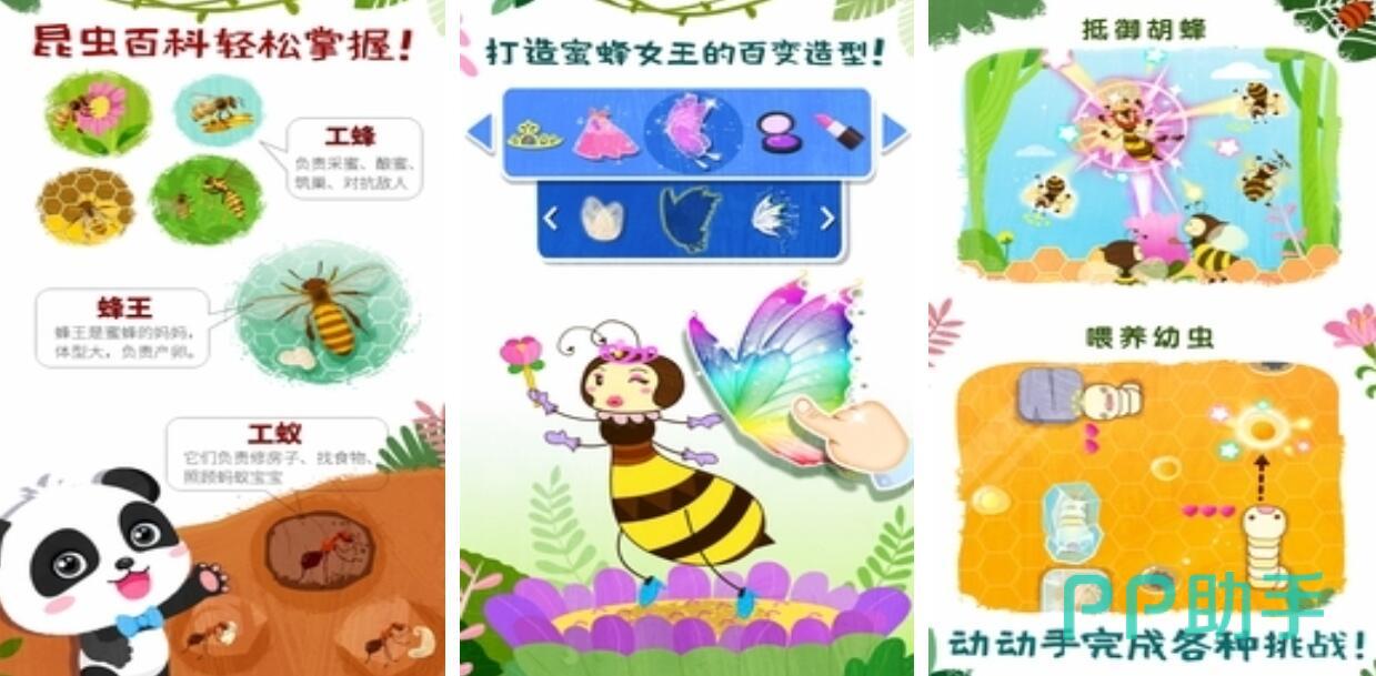 《奇妙昆虫世界》以生动且有趣的方式帮助小朋友们轻松学习昆虫百科知识。玩的过程中可以让小朋友们亲自喂养幼虫,让他们见证破茧重叠的过程。当黄蜂来抢夺蜂蜜时,还需要利用炮台瞄准射击,击退入侵者,而这一环节也很考验玩家的反应能力和眼手协调能力。游戏内的昆虫形象设计,可爱,能够快速吸引小朋友们的注意力。