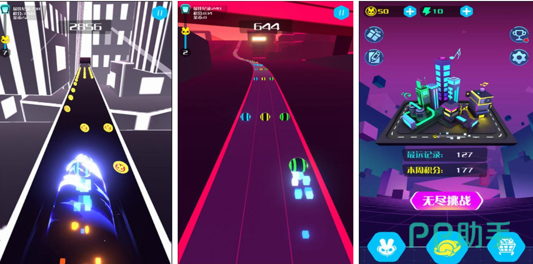 这是款将音乐闯关元素和小球跑酷玩法结合的APP,电影级的美术配以电音BGM很应景,设有挑战模式和普通关卡等多样的玩法,赛博朋克一般的背景刻画科幻感直接拉满,滚动的小球塑造的跑酷特效也相当硬核,给小球球设定的很多酷炫皮肤看上去光怪陆离,滚球类手游粉丝可以在滚动的电音中尽情挑战哟。