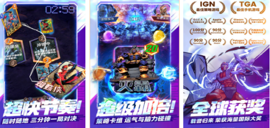 只要说到美国游戏,总会想到较为出色的漫威作品,这款游戏从推送之后就获得众多奖项,有超过2000多个艺术家共同打造而成,再加上正版授权,让众多小伙伴纷纷参与,享受无限激情与欢乐,游戏会不定期推送出相应赛事,玩家选择适合你的卡牌参与到战斗当中,超快的节奏,随时随地三分钟来一场对局。