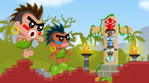 设定于史前文明背景,两位原始人角色拥有差异化能力:一位擅长攀爬与跳跃,另一位精通投掷与机关触发。关卡设计强调物理逻辑与互补解谜,例如需一人引爆炸药开路,另一人同步拉动绳索启动升降平台。卡通化造型搭配夸张肢体动作,增强视觉趣味性,同时降低理解成本,适配全年龄段玩家。