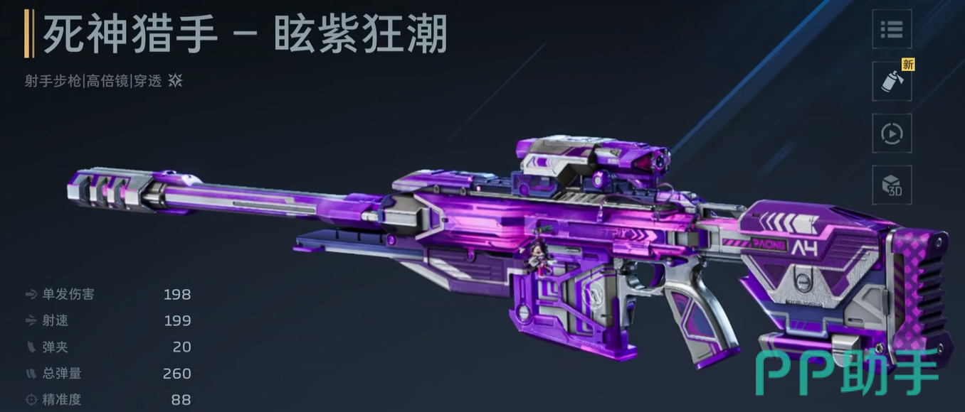 “死神猎手”专精于中远距离精准点杀,拥有突出的直线穿透能力。紫色阶段插件推荐:急速装填+多重回能,配合“强袭子弹”与“精准导弹”,重点优化换弹节奏,并利用穿透命中触发额外充能,构建稳定输出链。金色阶段需强化系统协同性:猎杀装填+精确能量为底层支撑,“精密追击”与“反哺”构成关键闭环——击杀目标即时返还弹药,命中弱点则同步叠加伤害倍率与能量获取,整套循环流畅度与持续压制力显著增强。
